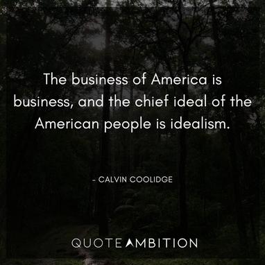 The business of America is business-Calvin Coolidge. Making money is art and working is art and good business is the best art. - Calvin Coolidge quotes at TheBestQuotes.