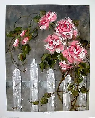 Marty Bell Hand Hand Painted Pickets And Pink Roses Oil Paintings Chinese Reproductions Vertical Study Art High Quality O Painting Calligraphy Aliexpress